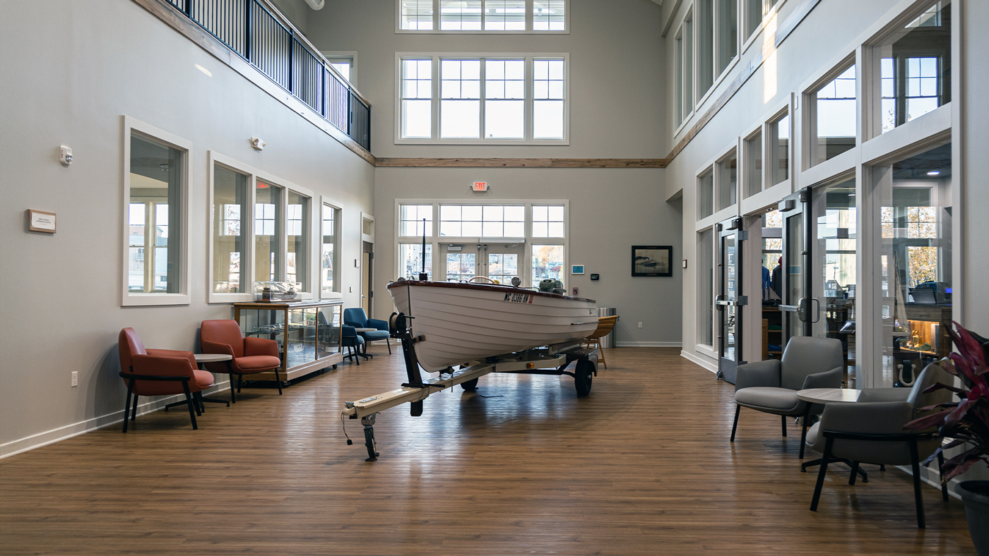 Edgewater’s team developed a campus Master Plan preserving current traditions and the future legacy of the museum campus. Elements of the Master Plan included a new marina and docks to accommodate the “On the Water” trademark events, guests, and the current fleet including several sailing vessels, a Truscott boat, and a tall ship. The new Edgewater designed building, completed in 2022, is 17,000 square feet and two stories tall, with state-of-the-art technology, expanded research and education capabilities, fully accessible exhibits, education, and a ship store with event and meeting spaces. Campus elements continue to be implemented, making the Master Plan come to life.